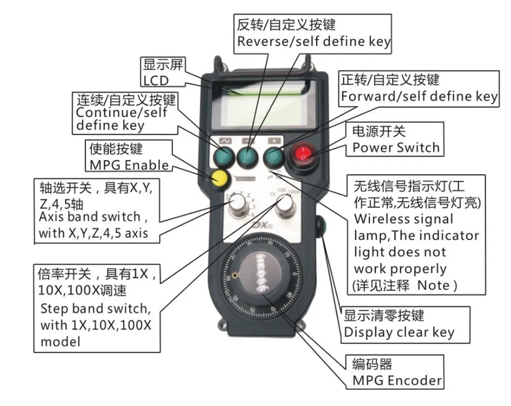 XHC AWGP-3/5AA CNC Wireless Remote MPG Controller Pendant FANUC /Manual Pulse Generator For 5,6 Axis CNC Router NEWCARVE